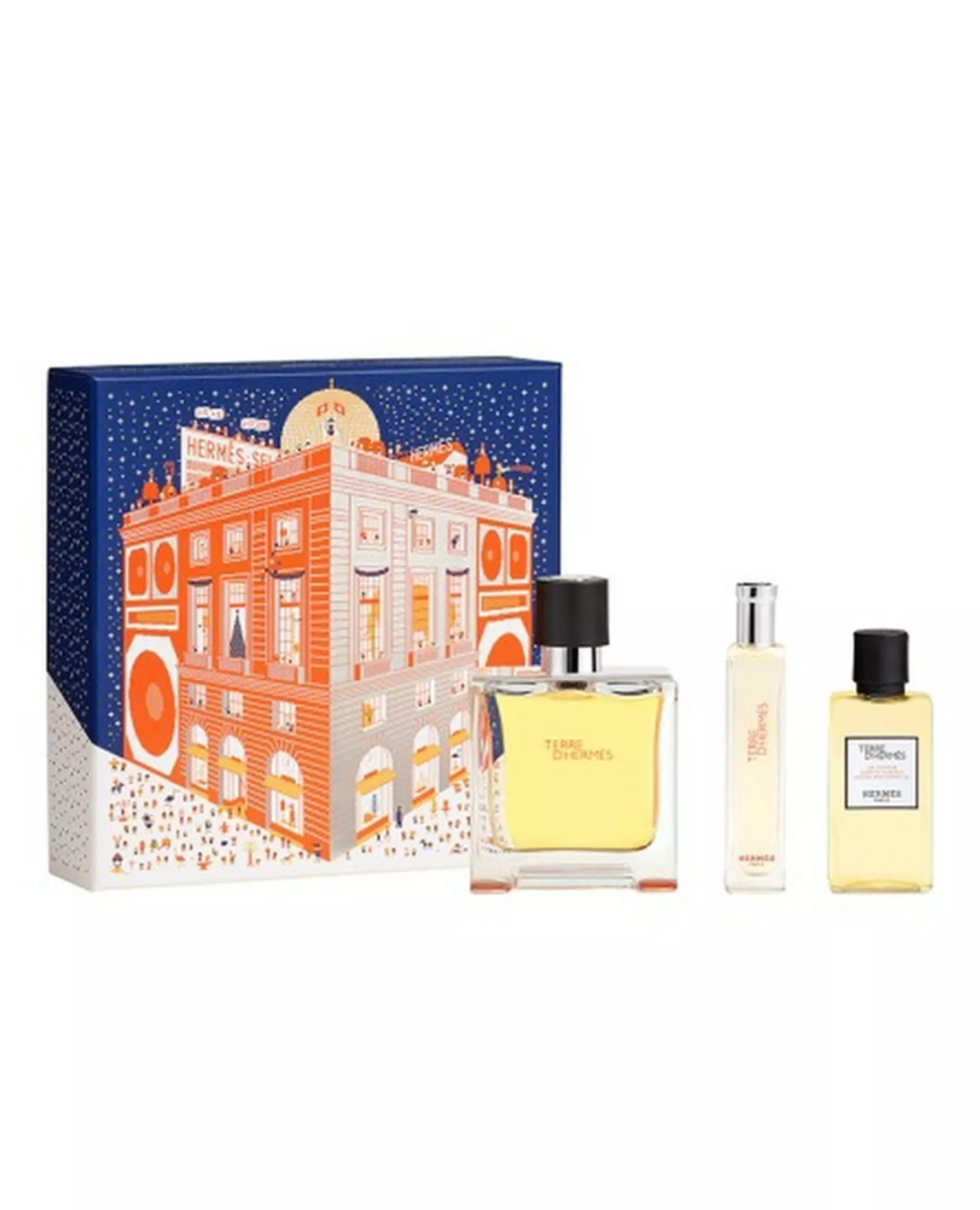 Парфумована вода Terre d'Hermès — це подарунковий набір ароматів, що складається з флакона об’ємом 75 мл і флакона для подорожей об’ємом 15 мл. Концентрація eau de parfum пропонує більш насичену, довготривалу інтерпретацію аромату Terre d'Hermès, відомого своїм деревним, мінеральним і цитрусовим характером. Менший флакон зручний для подорожей або щоденного використання поза домом.