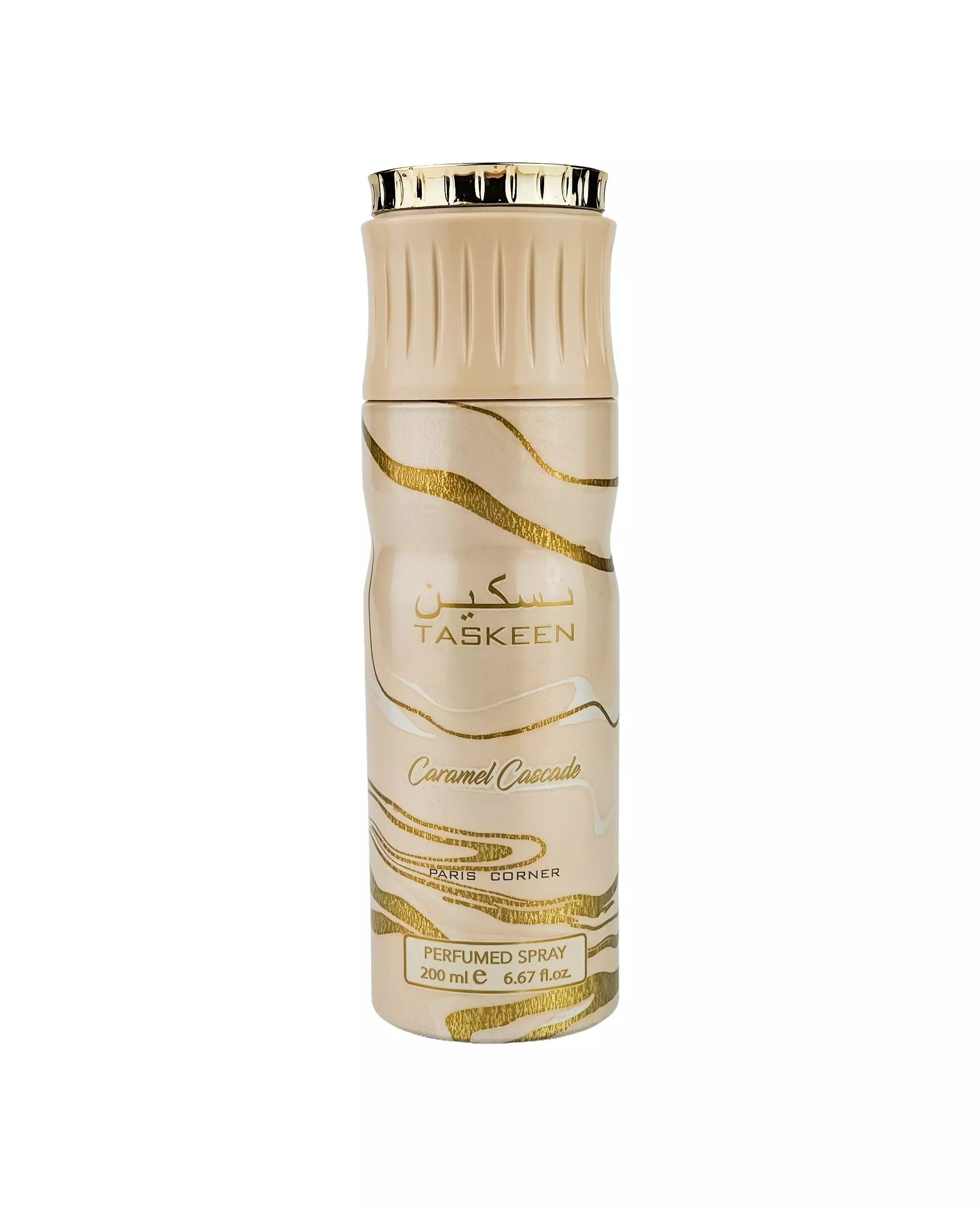 Taskeen Caramel Cascade - ароматизований продукт об'ємом 200 мл, представлений в компактному форматі, придатному для щоденного використання. Він має карамельний профіль запаху з солодкими, теплими нотками, що робить його придатним для персонального застосування аромату.