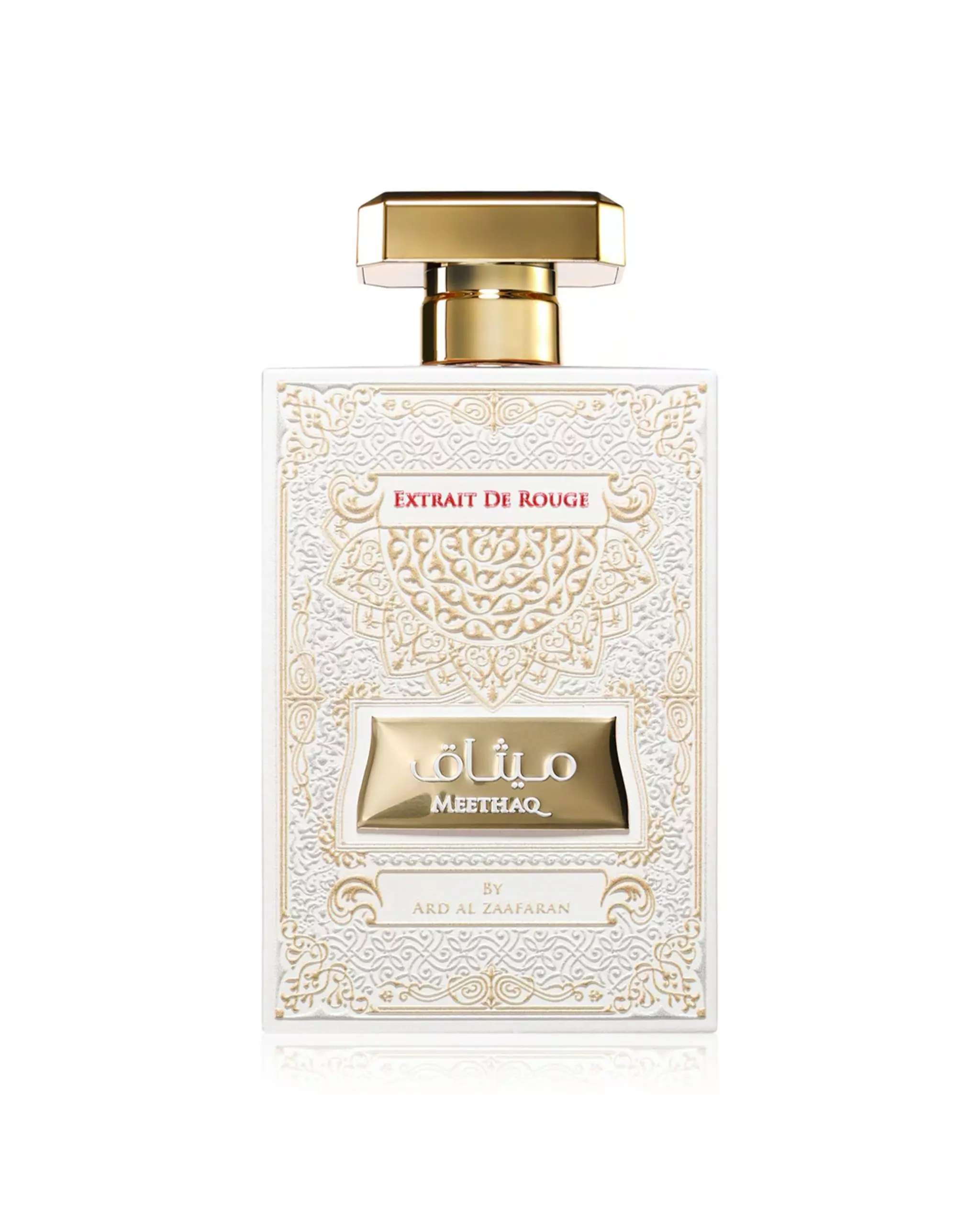 Meethaq Extrait de Rouge Eau de Parfum — аромат, представленный во флаконе объемом 100 мл. Как парфюмерная вода, он обычно имеет более концентрированный аромат, чем более легкие ароматы, что делает его пригодным для регулярного ношения и длительного использования. Продукт предназначен для индивидуального нанесения ароматов и может использоваться как для повседневного, так и для случайного использования.